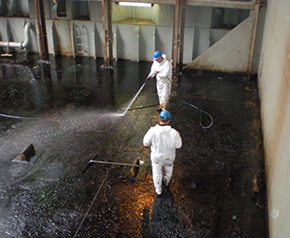 EMGESA cuenta con equipos de última generación para la limpiezas con agua calienta a; media, alta y ultra presión. Su aplicación es en eliminación de pinturas en superficies, eliminación de grafitis, eliminación de revestimientos, limpieza de lozas y galpones, limpieza de plantas celulosas y alimenticias, limpieza de depósitos, limpieza de intercambiadores de calor y limpieza de ductos.